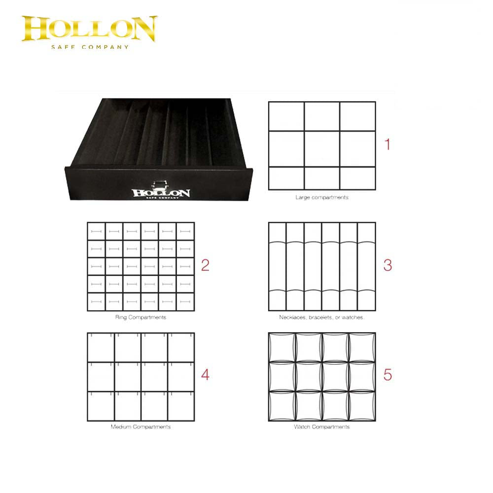 The Hollon line of Jewelry Safes offers you protection for your most precious items. These safes are made to comfortably fit in closets, dressing rooms, and offices. The interior jewelry drawers are high gloss black and lined with black velvet. Each drawer is designed to fit your collection of rings, watches, bracelets, necklaces, earrings, and more.