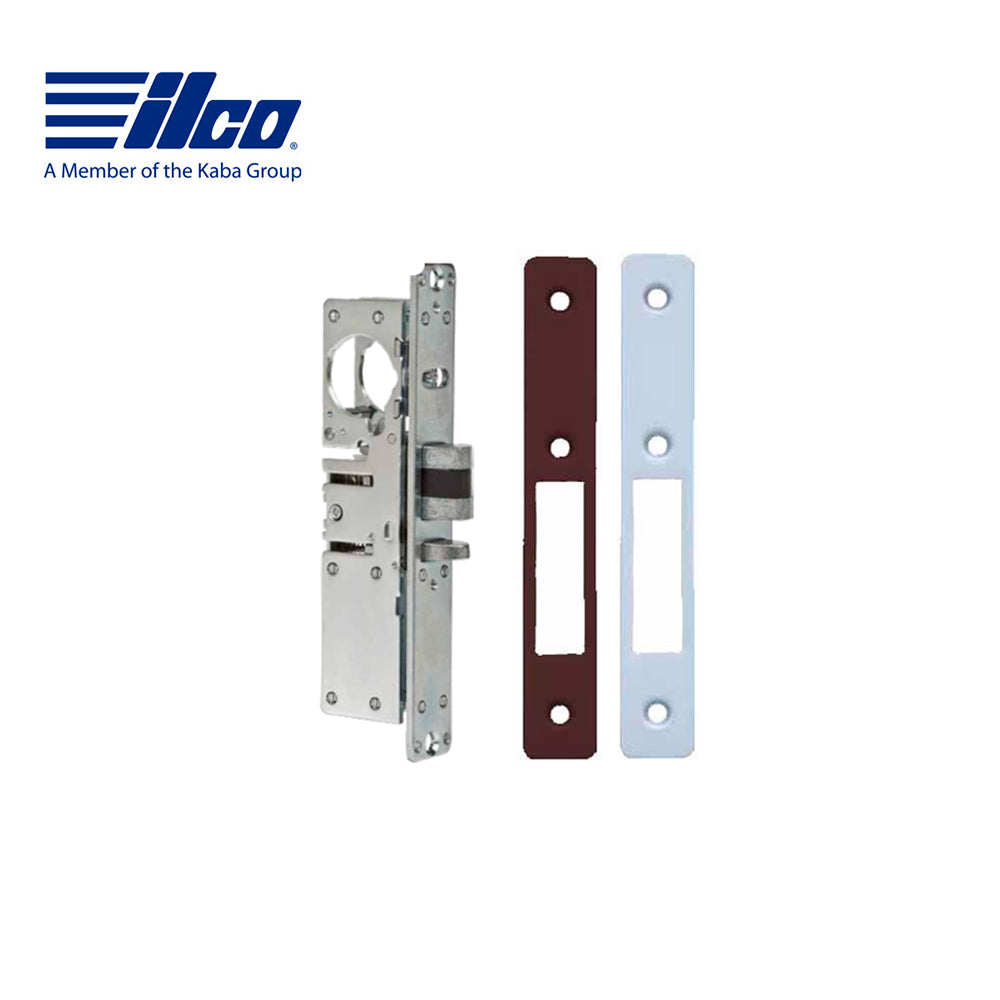 ILCO Deadbolt Mortise Lock 1 1/8" Backset, Individual Single Pack. No Handing. Flat Faceplate included with two finishes clear aluminum & Dark Bronze. fits aluminum stile doors. Five-ply laminated steel bolt with concealed hardened steel pin provides maximum security on single leaf doors.